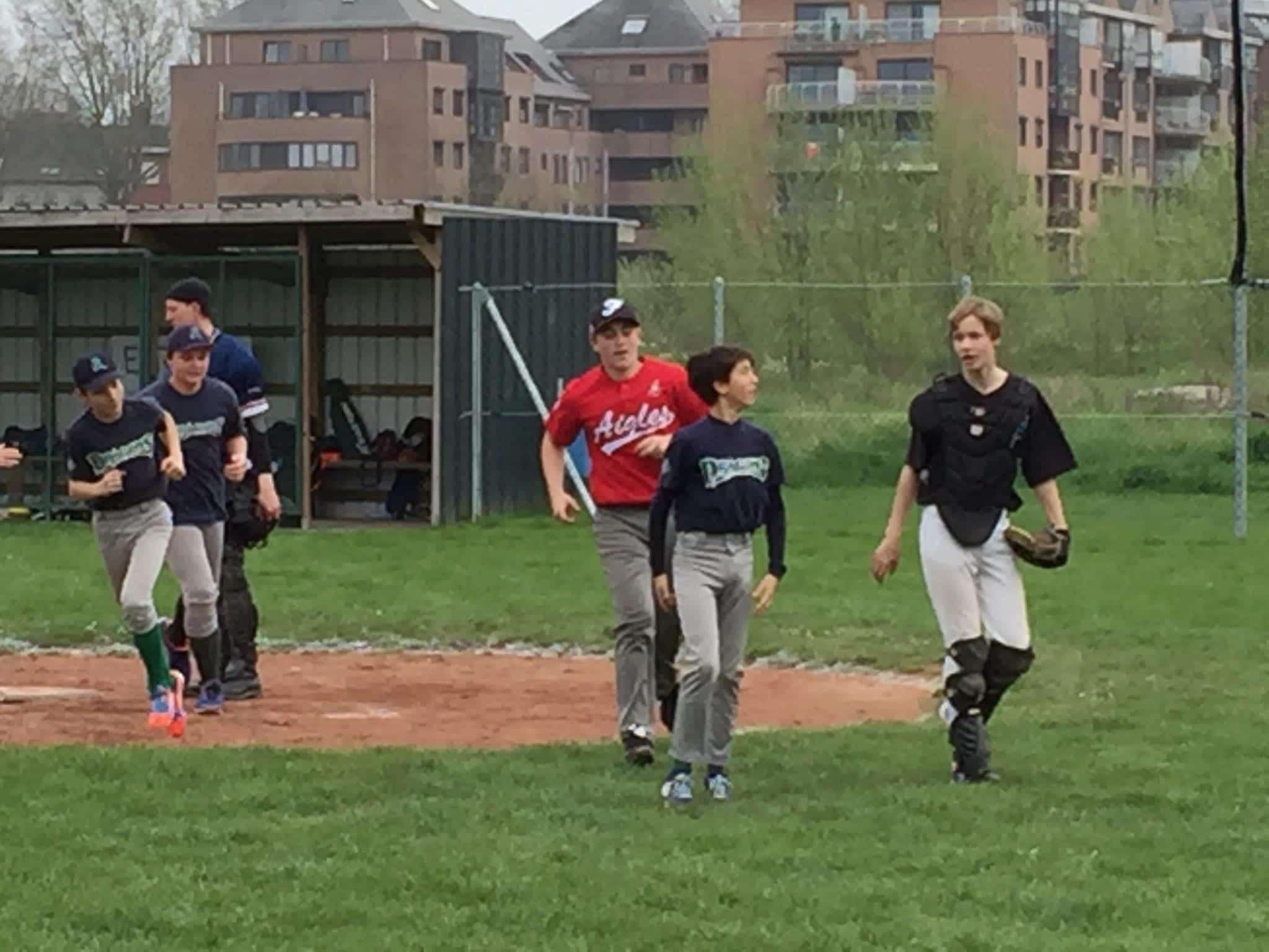 La deuxième journée du championnat emmène nos jeunes en terres belges chez le club de Tournai que nous découvrons. Mais le nouveau venu dans le championnat 15U sera une bonne surprise pour notre équipe en construction. En effet, la batterie de l’entente sera tres efficace ne laissant que peu de marge aux battes adverses, tandis que nos attaquants sauront exploiter au maximum les balles envoyées par le lanceur belge. Au final, ce sont deux larges victoires pour notre équipe qui a su montrer un tout autre visage qu’a la première journée.